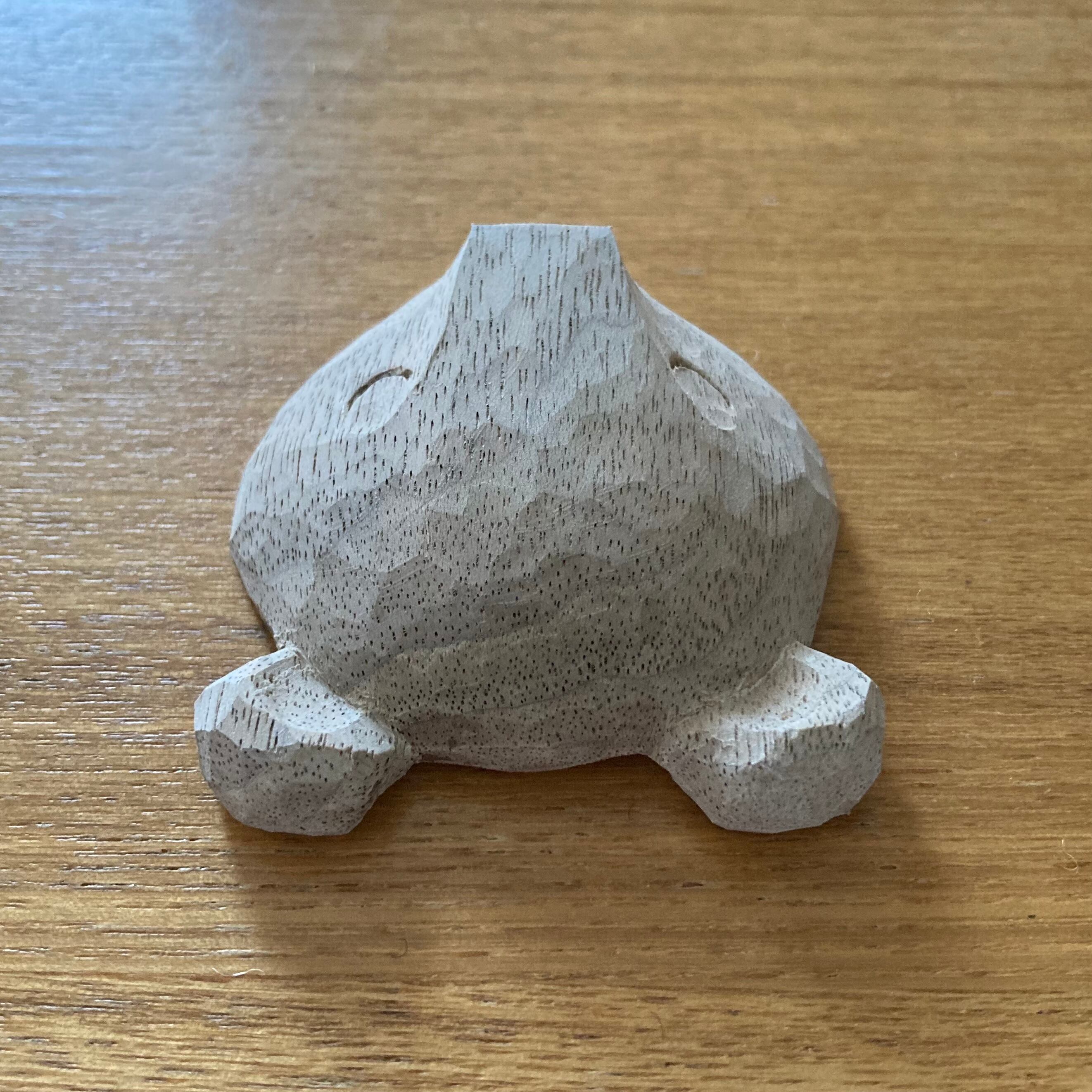 道産クルミ材で彫り上げたあと、胡粉を塗り重ねて眠気をまとっている様子を表現しました。